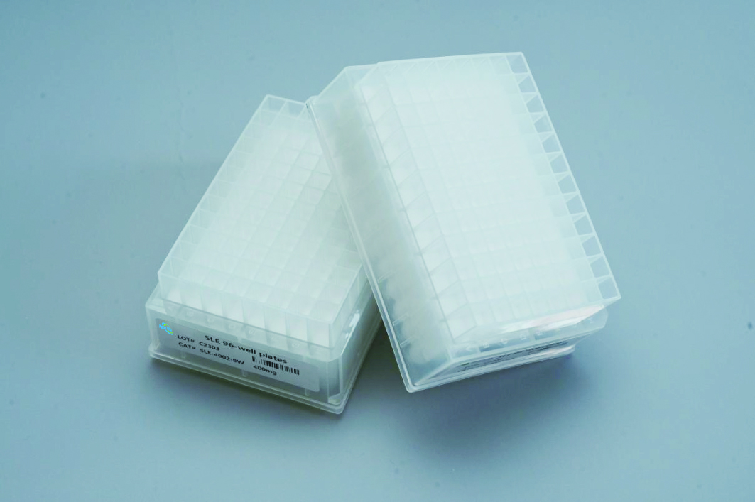 SLE 96孔固载液液萃取板,采用特殊工艺处理过的硅藻土,具有最大的比表面积和最低的表面活性,能够提供一个理想的液液分配的支撑表面,可以代替大部分传统的液液萃取方法。该方法可以应用于制药,药物代谢分析,生化分析,纺织业, 食品,环境等多个领域。